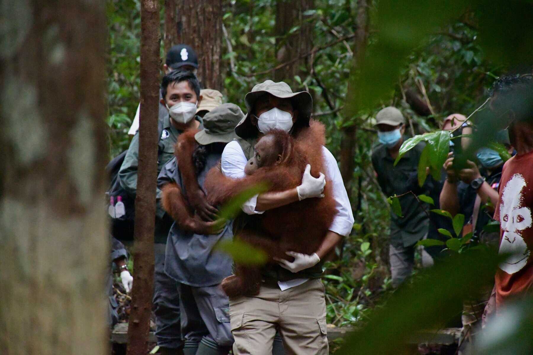 Tack vare rehabiliteringsprogrammet kunde vår indonesiska partner BOS Foundation och de lokala myndigheterna, med vårt stöd, släppa ut 17 orangutanger i regnskogen under 2025. Totalt har 556 orangutanger nu släppts ut. Detta är ett otroligt imponerande resultat som motiverar oss varje dag.